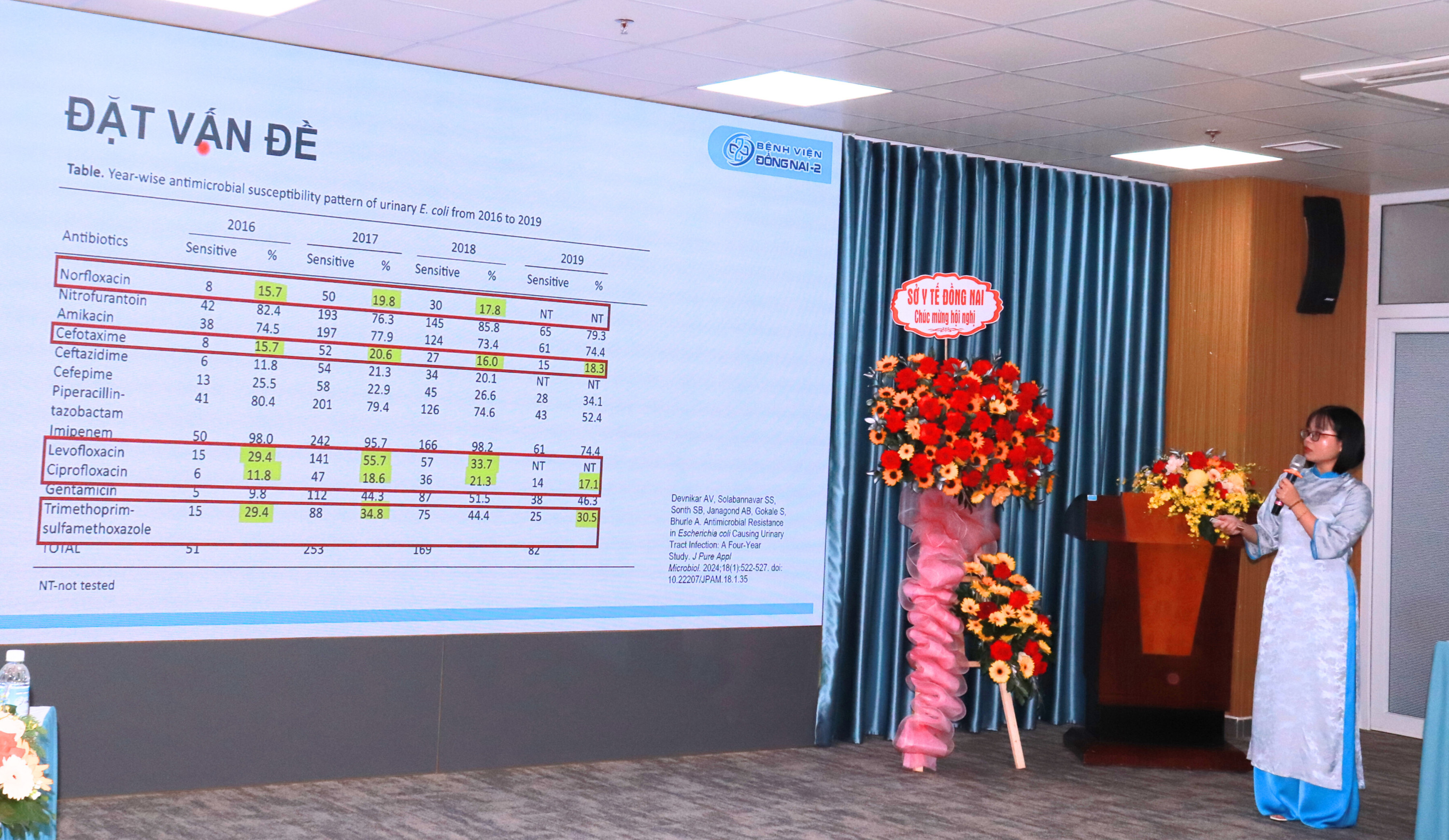 ThS.BS Nguyễn Khổng Tường Minh, Trưởng khoa Truyền nhiễm, Bệnh viện Đồng Nai -2 chia sẻ đề tài “Tình hình đề kháng với một số kháng sinh đường uống thường dùng của vi khuẩn E.coli gây nhiễm trùng đường tiểu” tại hội nghị.
