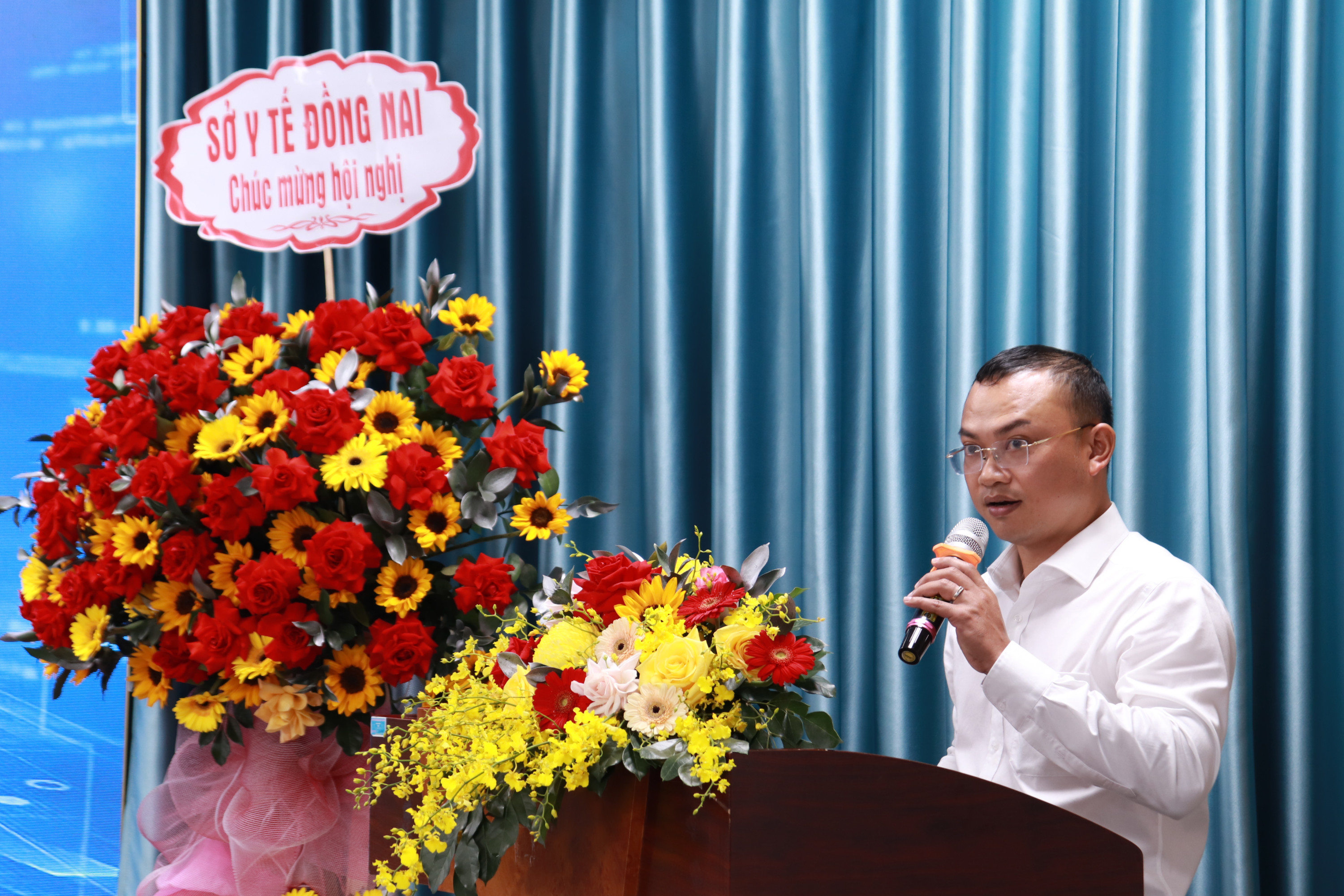 Ông Nguyễn Trung Kiên, Phó chủ tịch Hội đồng quản trị Bệnh viện Đồng Nai -2 phát biểu khai mạc hội nghị.