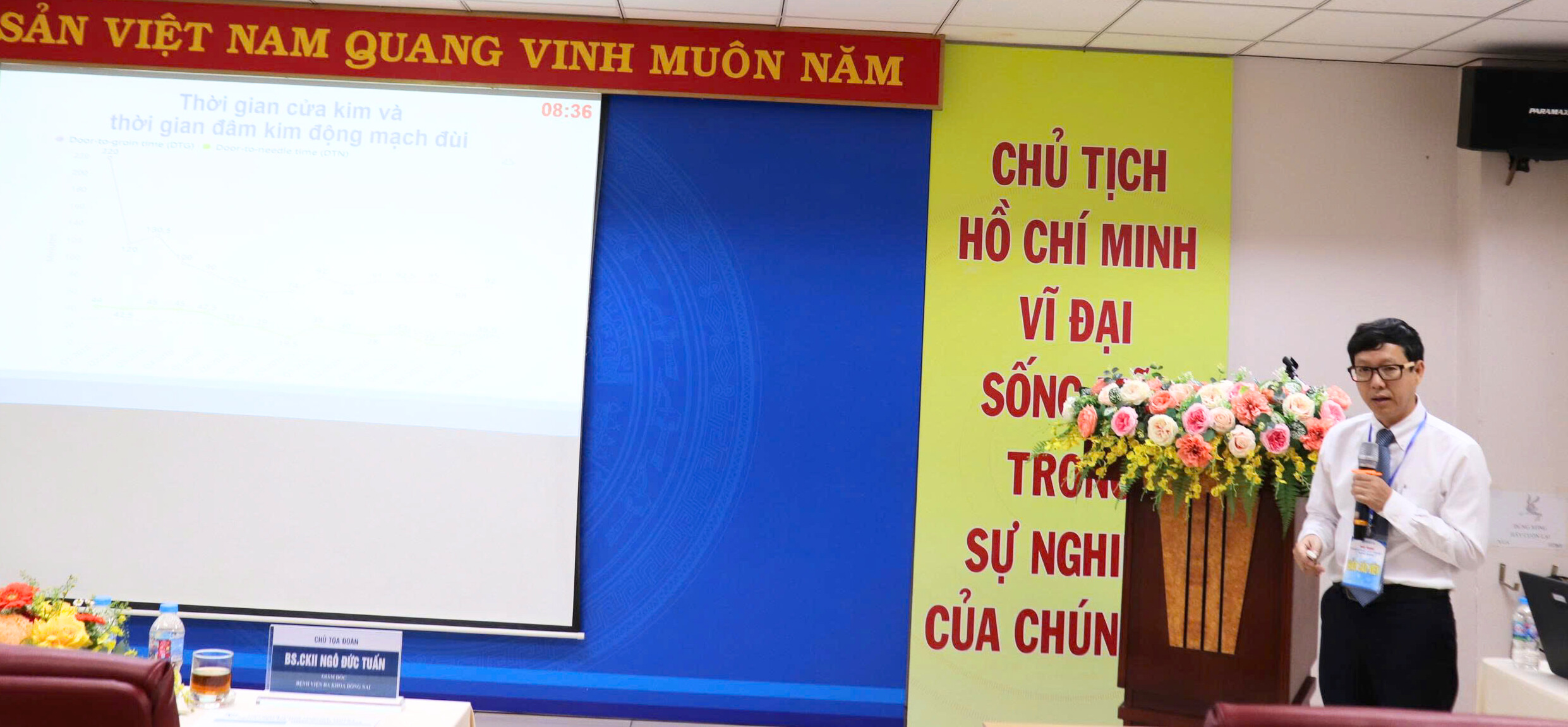 BS.CKII Nguyễn Đình Quang, Trưởng khoa Nội thần kinh trình bày đề tài “Xây dựng hệ thống điều trị đột quỵ” tại hội nghị.