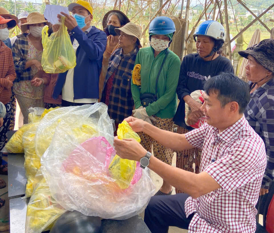 BS.CKII La Văn Dầu, Giám đốc CDC Đồng Nai, cấp phát thuốc cho người dân ở xã Đồng Xuân, tỉnh Đắk Lắk.