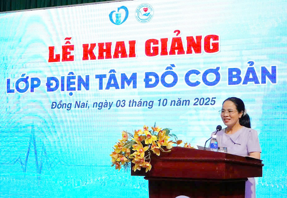 Chỉ đạo tại lễ khai giảng, BS.CKII Đỗ Thị Nguyên – Giám đốc Sở Y tế Đồng Nai nhấn mạnh: “Bệnh tim mạch hiện là gánh nặng sức khỏe toàn cầu và tại Việt Nam. Do đó, việc nâng cao năng lực chuyên môn, đặc biệt là khả năng đọc và phân tích điện tâm đồ, có ý nghĩa quyết định trong chẩn đoán sớm, xử trí kịp thời, giảm thiểu biến chứng cho người bệnh, nhất là ở tuyến y tế cơ sở.”