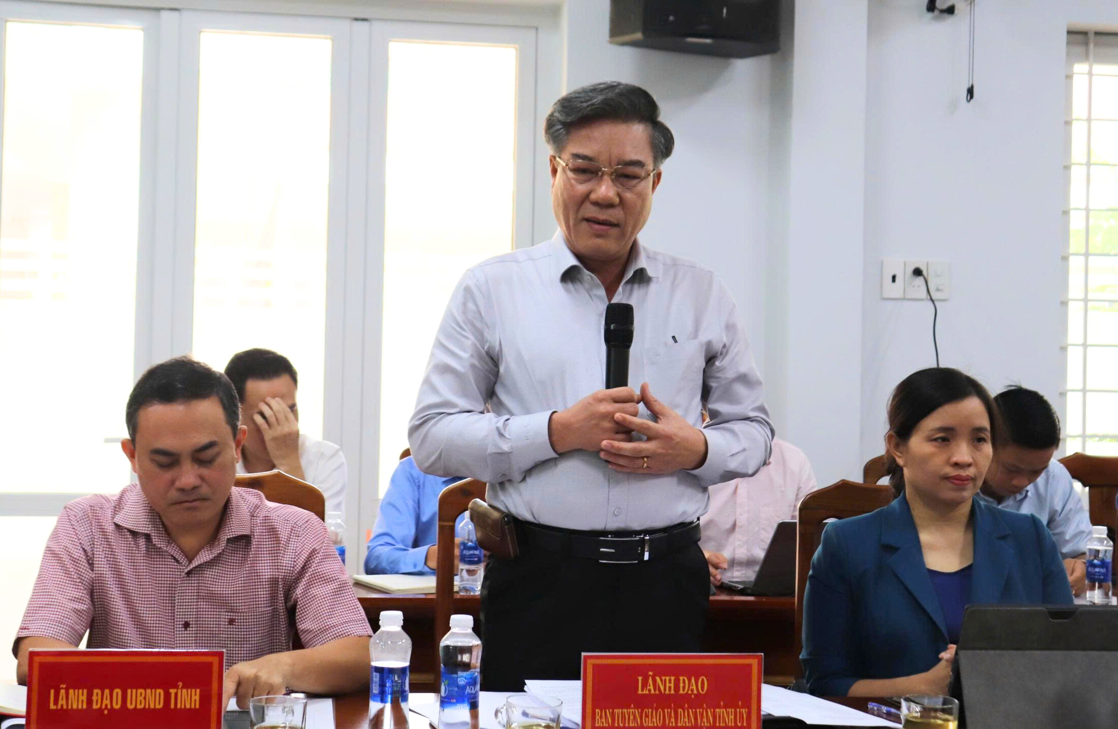 Phát biểu tại buổi làm việc, Trưởng Ban Tuyên giáo và Dân vận Tỉnh ủy Dương Minh Dũng đề nghị ngành y tế tiếp tục tổ chức học tập, quán triệt và tuyên truyền sâu rộng các quan điểm, chủ trương lớn của Đảng, của Tỉnh ủy về lĩnh vực y tế, đặc biệt là những nội dung nêu trong Nghị quyết số 72 của Bộ Chính trị về một số giải pháp đột phá nhằm tăng cường bảo vệ, chăm sóc và nâng cao sức khỏe nhân dân.