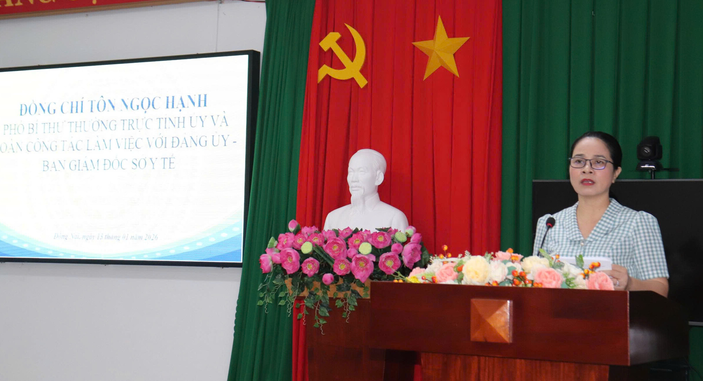 Phát biểu kết luận buổi làm việc, Phó Bí thư Thường trực Tỉnh ủy, Chủ tịch HĐND tỉnh Đồng Nai Tôn Ngọc Hạnh ghi nhận và đánh giá cao những nỗ lực của ngành y tế trong thời gian qua. Đồng thời đề nghị Đảng ủy, Ban Giám đốc Sở Y tế sớm củng cố, kiện toàn tổ chức bộ máy, thực hiện tốt công tác cán bộ, tăng cường đoàn kết, thống nhất vì sự phát triển chung của ngành và của tỉnh.