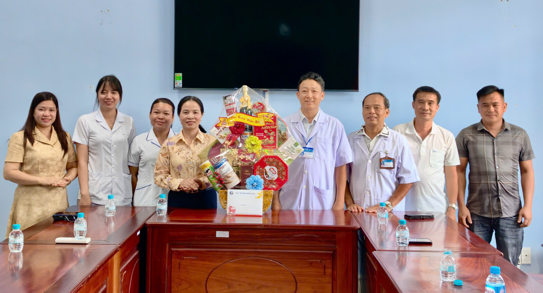TTƯT.BS.CKII Đỗ Thị Nguyên - Giám đốc Sở Y tế Đồng Nai tặng quà động viên tập thể y, bác sĩ Bệnh viện Y học cổ truyền Bình Phước.