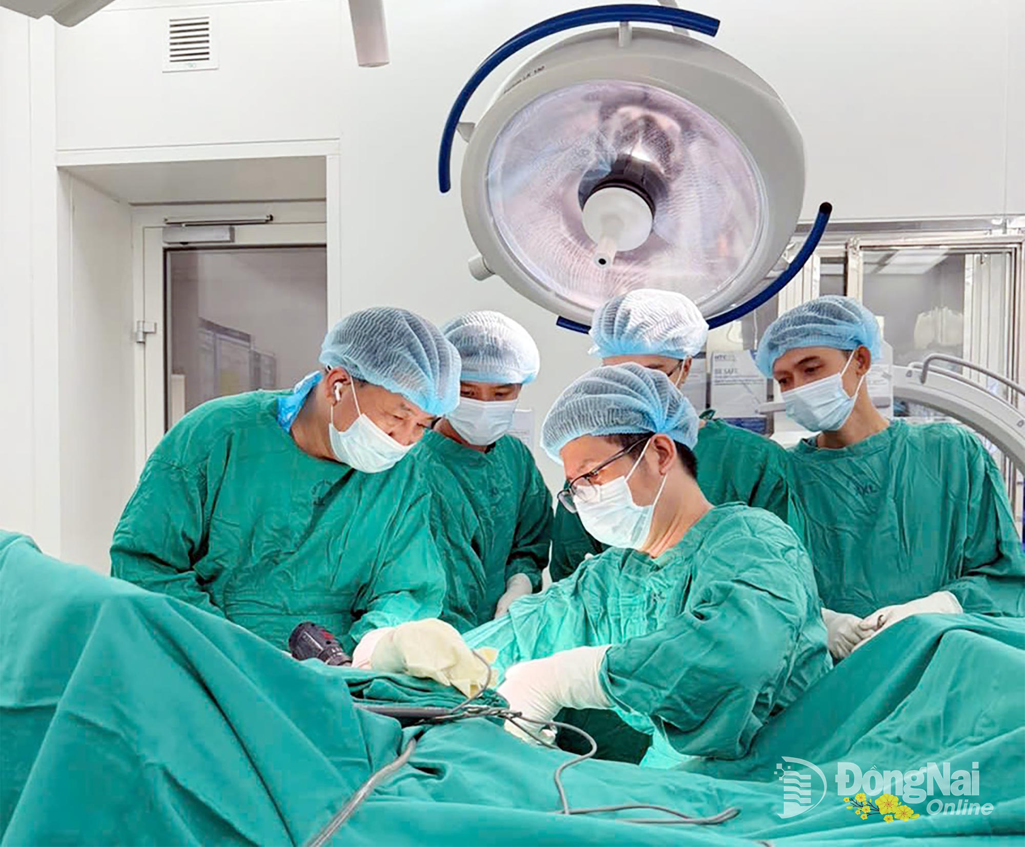 Ê-kíp phẫu thuật Bệnh viện Đa khoa Đồng Nai thực hiện ca phẫu thuật điều trị cho bệnh nhân ngày 21-2. Ảnh: Lê Ngân