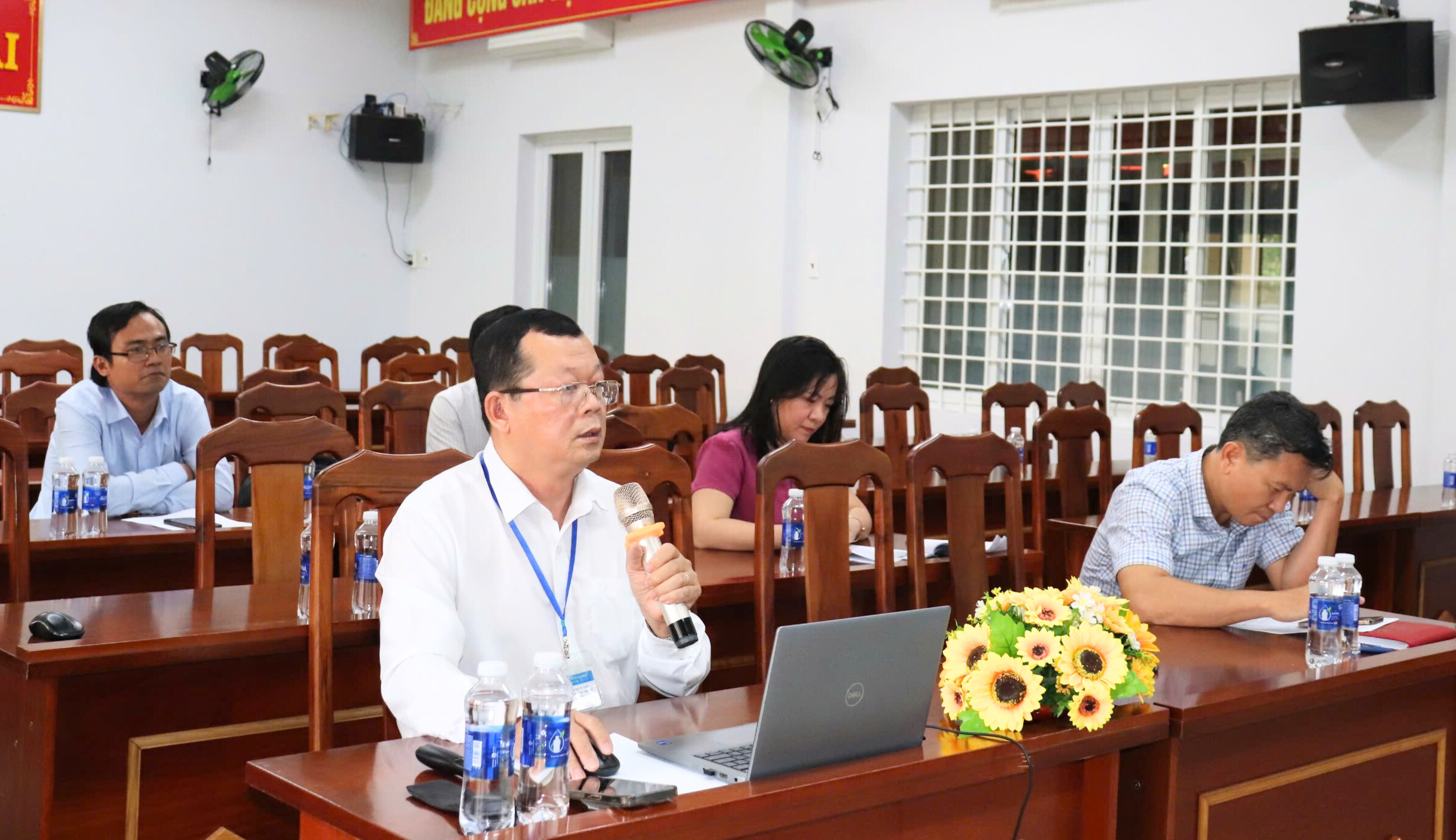 Phó Giám đốc Sở Y tế Lê Anh Tuấn giải đáp thắc mắc của một đơn vị về xử lý rác thải y tế.