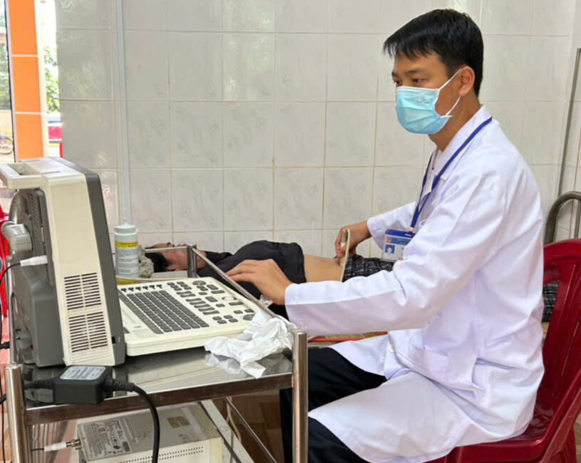 BS.CK I Trần Văn Thi, Trưởng Trạm Y tế xã Lộc Quang siêu âm cho một phụ nữ trên địa bàn xã.