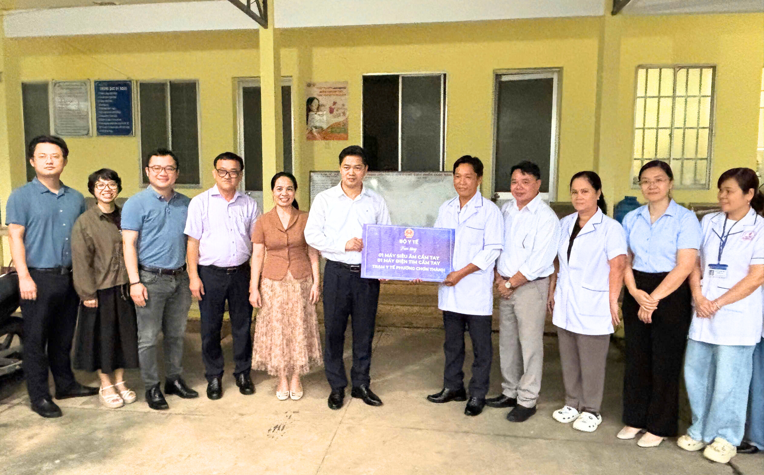 Thứ trưởng Thường trực Bộ Y tế Vũ Mạnh Hà tặng máy siêu âm và điện tim cầm tay cho Trạm y tế phường Chơn Thành