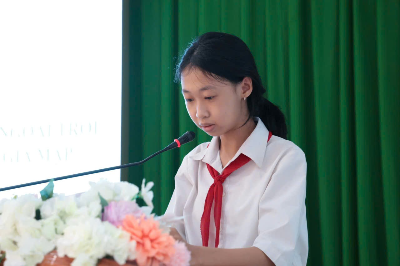 Cũng tại Chương trình, đại diện cho các bạn học sinh, em Nguyễn Thị Hồng Nhung, học sinh Trường THCS Đắk Mai, đã có những lời phát biểu đầy xúc động. Em thay mặt các bạn được nhận học bổng gửi lời cảm ơn sâu sắc đến nhà tài trợ, lãnh đạo Sở Y tế, lãnh đạo UBND xã, Ban Giám hiệu nhà trường cùng các thầy, cô đã quan tâm, tạo điều kiện để các em có thêm cơ hội học tập và được vui chơi trong môi trường lành mạnh. Em cũng thay mặt các bạn hứa sẽ nỗ lực hơn nữa trong học tập, phấn đấu trở thành con ngoan, trò giỏi, người công dân có ích cho xã hội.