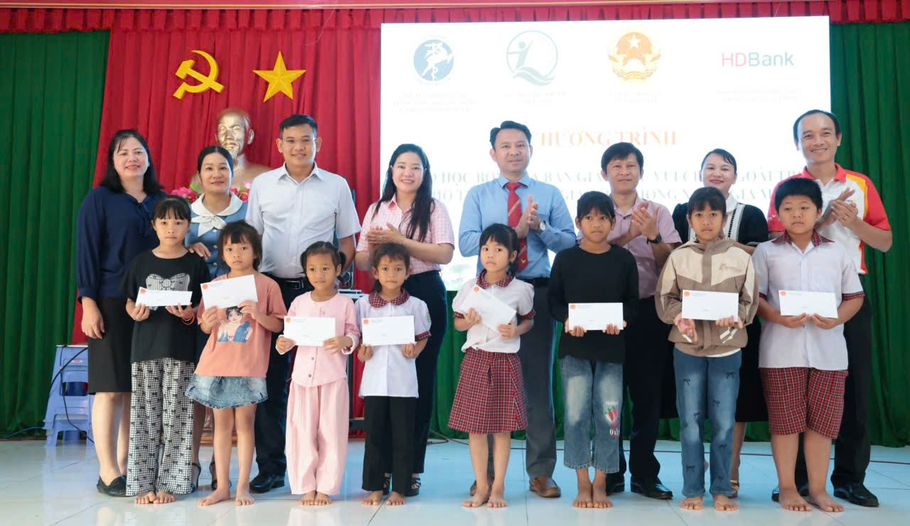 Tham dự Chương trình có bà Phạm Thị Mai Hương – Phó Giám đốc Sở Y tế; ông Nguyễn Hoàng Anh Vũ – Giám đốc Chi nhánh Ngân hàng TMCP Phát triển Thành phố Hồ Chí Minh (HDBank) tại Bình Phước; ông Hoàng Vĩnh Quang – Giám đốc Trung tâm Công tác xã hội và Quỹ Bảo trợ trẻ em tỉnh, cán bộ xã Bù Gia Mập, thầy cô giáo cùng đông đảo các em học sinh được nhận học bổng tham dự.