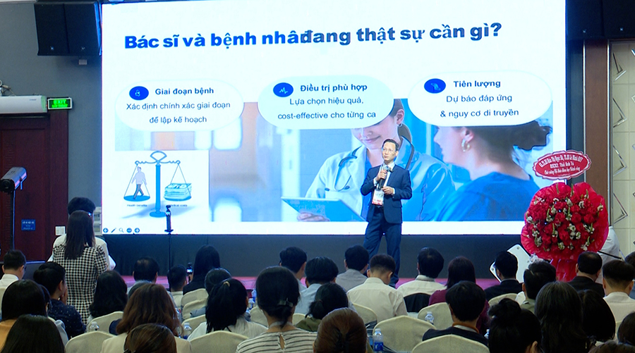 <div style="text-align: center;"><em>BS.CKII Nguyễn Thanh Hải trình bày chuyên đề “Ứng dụng trí tuệ nhân tạo (AI) trong phân tích tế bào học ThinPrep kết hợp HPV DNA trong tầm soát ung thư cổ tử cung”</em></div>